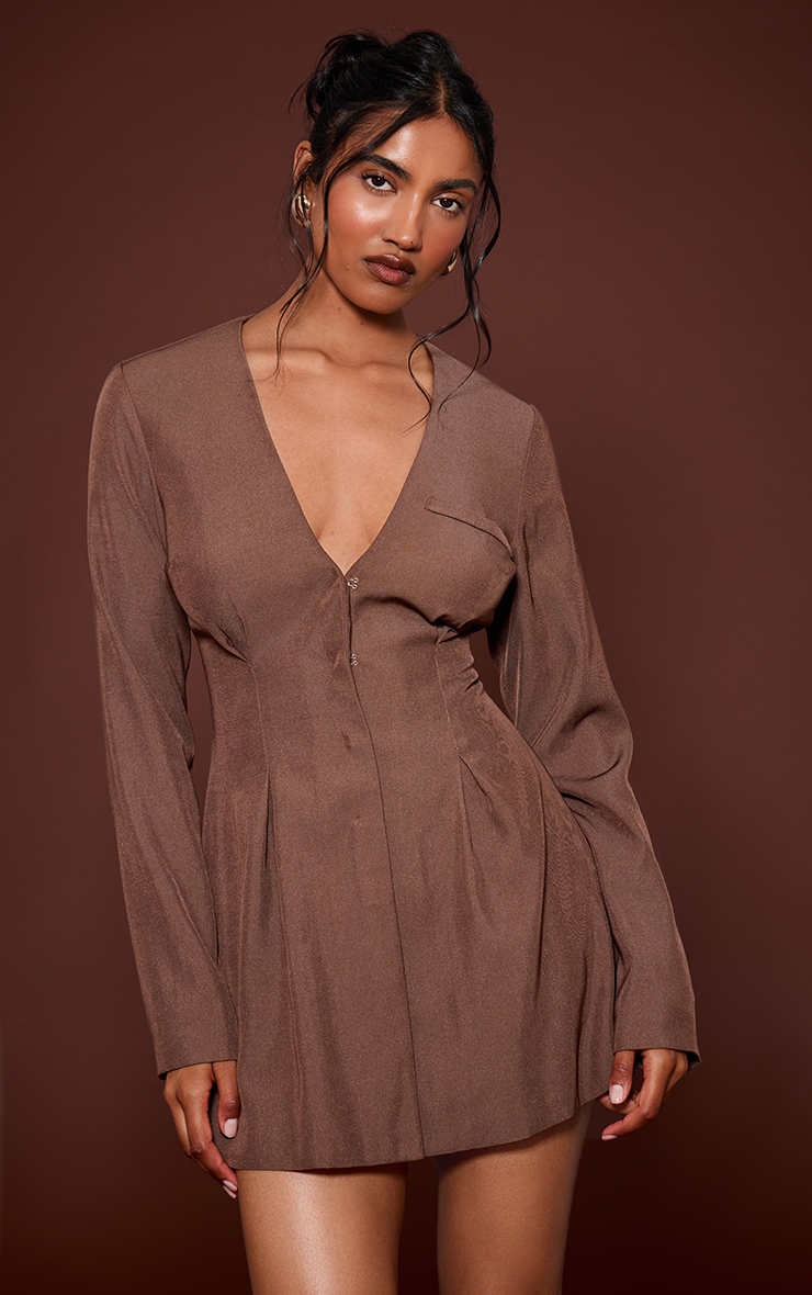 Chocolate Cinched Waist Pleated Blazer Dress