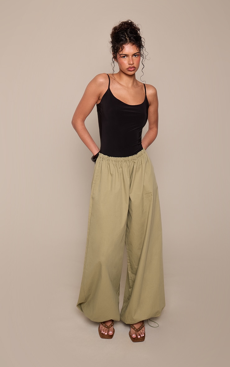 Khaki Elasticated Waist Parachute Pants