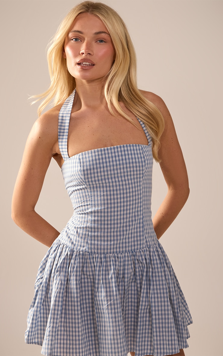 Blue Gingham Halterneck Shift Dress